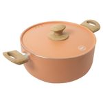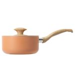 Aluminio Reciclado con 2,5mm de espesor y antiadherente de cerámica. Contiene: - Cacerola de 20cm - Olla de 24cm - Sartén ce 20cm - 2 Utensilios de bambú.