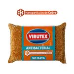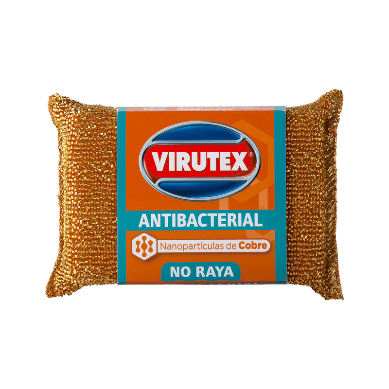 Esponja recubierta con manga plástica que no raya superficies delicadas, cuidando sus productos antiadherente como sartenes, ollas y otros. Con nanopartículas de cobre que crean una barrera eficaz e inocua contra bacterias que se alojan invisiblemente en la esponja al estar en contacto permanente con la humedad, y evita la retención de malos olores.